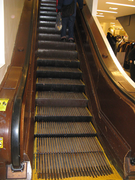 From the third floor to the top of Macys there are the old original wooden escalators. They are very cool.