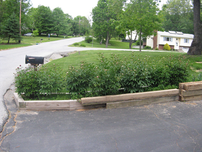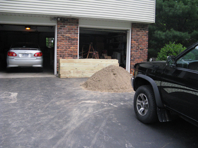 Relocated dirt and timbers for flower bed Flower bed in transition