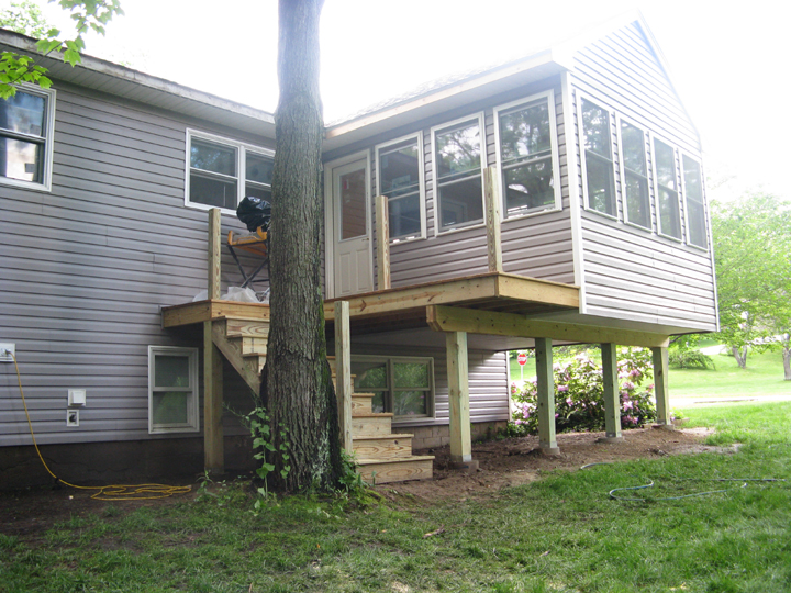 Other than the small details that need finishing and a lot of painting (the whole living room, dining room, hall and stairs), after the railing and all the painting is done we will be ready for new carpet.  We need to move all the attic stuff back up (and Dad is almost done up there so we can), and then we will move all our furniture out into our new sun room while the carpet is installed.  The new deck doesn’t have a railing or stairs yet but I know it will.  I think our contractor may be done in two weeks time (even with Memorial Day weekend in the middle of that time.  Then we need to finish painting (and that includes all eight of the new doors we finally have added).  We also need to paint around our front door (outside) and paint the front door and the garage doors (house and car).  Hopefully we will be done long before we head to Houston for the reunion in July.  When we come home I hope to just enjoy some summer vacation.