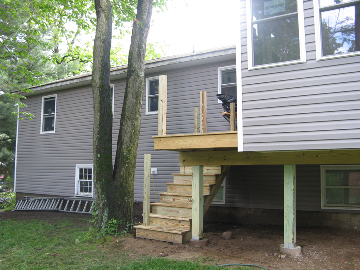 Today when I came home this is the new railing that greeted me.  Notice the new hand railing to the basement as well.