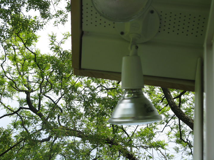 Our new fan - no it does not have candles on it! 9-our-fan.jpg Spotlights outside our room into our yard. New Porch Light Remote for our fan Here’s a small sample of the tile - hopefully I will have another picture of the finished tile soon.