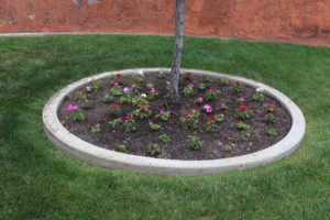 We learned last year that this bed is shaded by the tree and sun loving plants don’t do well here but impatients love it so that is what we planted. They will spread and fill the bed.