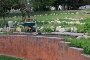 The rock garden Carl is building from below.