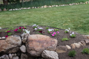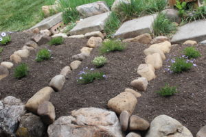 Carl’s completed rock garden with the phlox planted. Right now they look sparse but we know they will fill in.