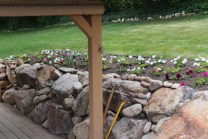 Flower garden around patio.