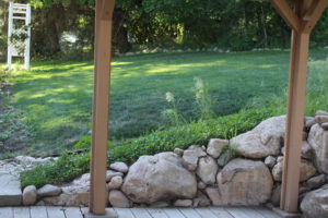 The back of the flower bed around the upper patio.