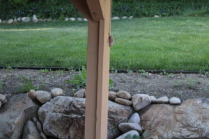 Flower garden around patio. We will plant Wave Petunias on the sides and Vinca on the back.