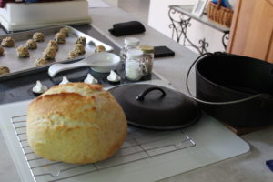 My starter is crazy active and this loaf really rose as it cooked. Those are chocolate chip cookies in the background.