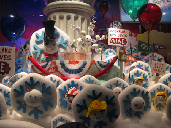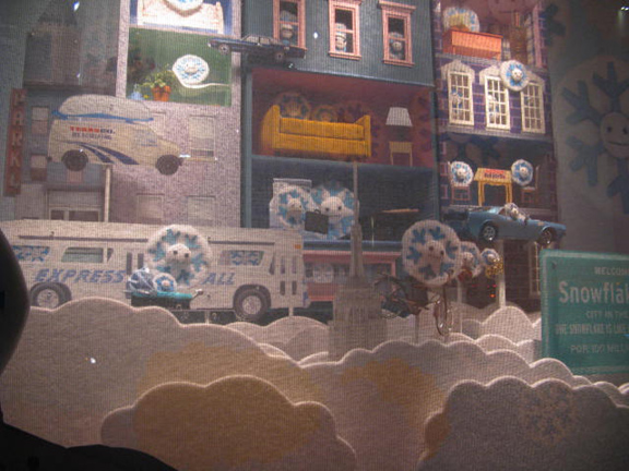 Then we went to Rockefeller Center and to Saks. First the windows at Saks which were based on the book “A Snowflake Named Mike” – a story about a snowflake who doesn’t want to be like other snowflakes and is responsible for all snowflakes being unique.