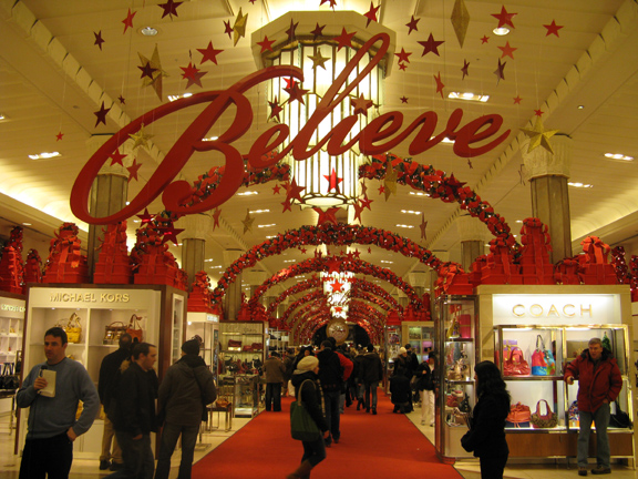 Then we went inside Macys – it is always so wonderfully decorated. I loved the red and the Believe theme.