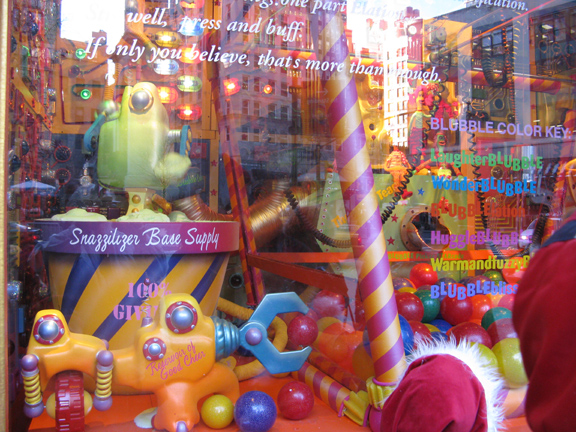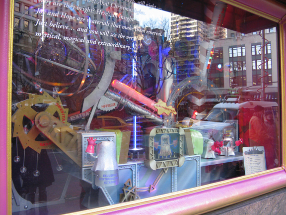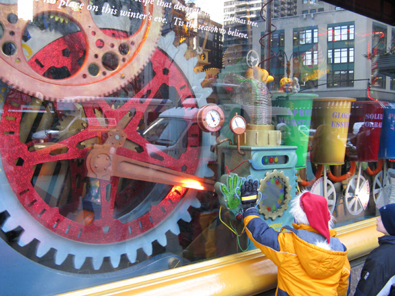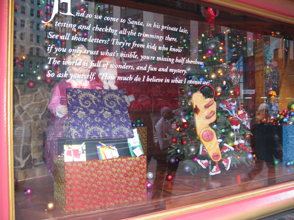 We went to NYC for our annual trip to see the animated window displays and other fun things. Here is a summary of our day. We started our day at Macy’s. On 34th Street the windows show scenes from the movie Miracle on 34th Street. It is the same every year. It is a very cool display and it was nice this year as we had plenty of time to really study the displays. There is so much detail down to the buckles on the shoes and the pictures and wallpaper on the walls. I didn’t take pictures this year as I have so many. On Broadway the windows were about how Christmas decoratios are made – from ornaments to stars to tinsel and more. It was interesting. Their theme was “Believe” and inside was very very cool.