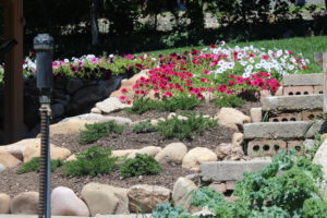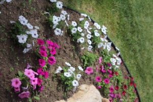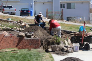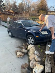 Sometimes in life you choose your jobs and sometimes they are chosen for you. We had talked for some time about changing the “rock wall” and garden area near the driveway and Carl had dug up the area and we had planted some daylilies that Rhonda had given us and some bulbs we wanted to relocate from another part of our yard. He put in a lot of time last fall to prepare the area and we planted them all there. We had recently removed the mulch we had covered them with for the winter and the day lilies looked great and the bulbs were starting to grow. Then a week or so ago our doorbell rang and we learned that a car parked in our neighbors driveway had taken off and landed on the rock wall, stopped mostly by the rebar post that was holding up a sprinkler head. Thanks to our neighbor up the hill the car was able to be moved off the wall and although it is probably totalled they did drive it back across the street. At the least we needed to fix the sprinkler head that was destroyed and fix the wall and garden. So poor Carl was forced into a labor he had not planned on.