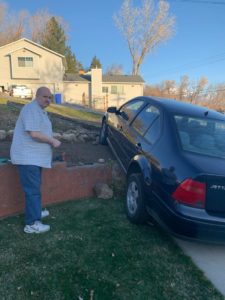 Our neighbor checking out the damage and assessing the possibility of moving the car. It is actually on a rebar post that was holding us a sprinkler head.