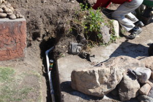 The first step was to get Andrew and Matthew to give us some counsel on what was the best way to resolve the sprinkler issue. We wanted to have a sprinkler head up on the hill more as the one that was taken out had been watering the hill and the grass and was really wasting a lot in its cycle.
