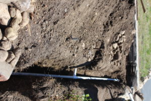 Then on Friday, Matthew came over to help Carl dig and prepare the area and set the pipes for the new sprinkler extension. Carl had already dug some of the trench but that morning our computer had a glitch that he had to deal with which delayed him finishing but with Matthew’s help the trench was quickly dug. (Andrew came by mid day and he was able to get our computer up and running again – what would we do without the help of our children – they do so much for us.) Here are some photos of Carl and Matthew working on and in the trenches.