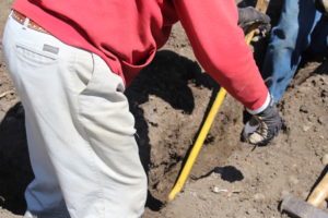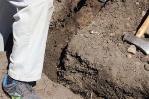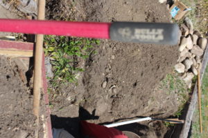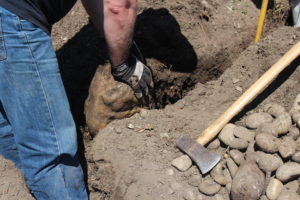So here is the rock that stalled the digging. You can see it is very large. We could not believe that Matthew lifted it out – he is very strong. It is destined to become part of the rock wall when it is rebuilt.